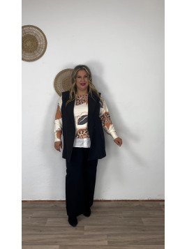 Jersey de mangas largas, con el cuello redondo y es al cuerpo. Es talla única da desde una 40 a una 46. (120 de pecho y 130 de barriga)