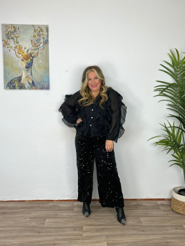 Pantalón Recto Lentejuelas Mediano
